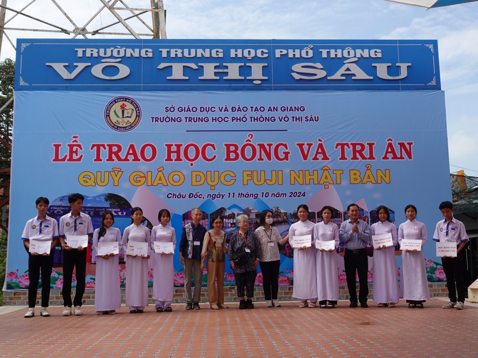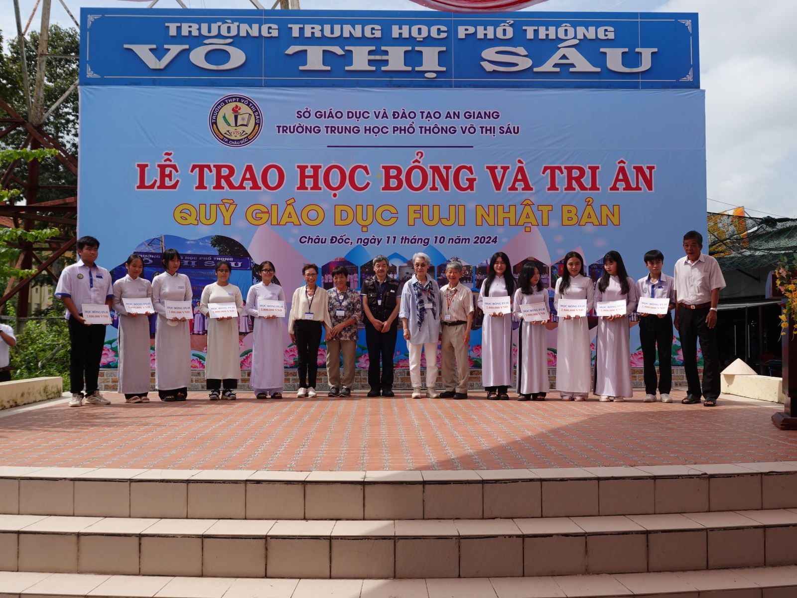 [注:当時FUJI教育基金は、チャウドック市ツ・コア・ギア高校の生徒に奨学金を贈っていました。https://new.fuji-qhb.org/tours2000-2014/fuji-tours-2000/#tsukoagiaTKN_zhonggao_xiao2000nian_dang_shi]